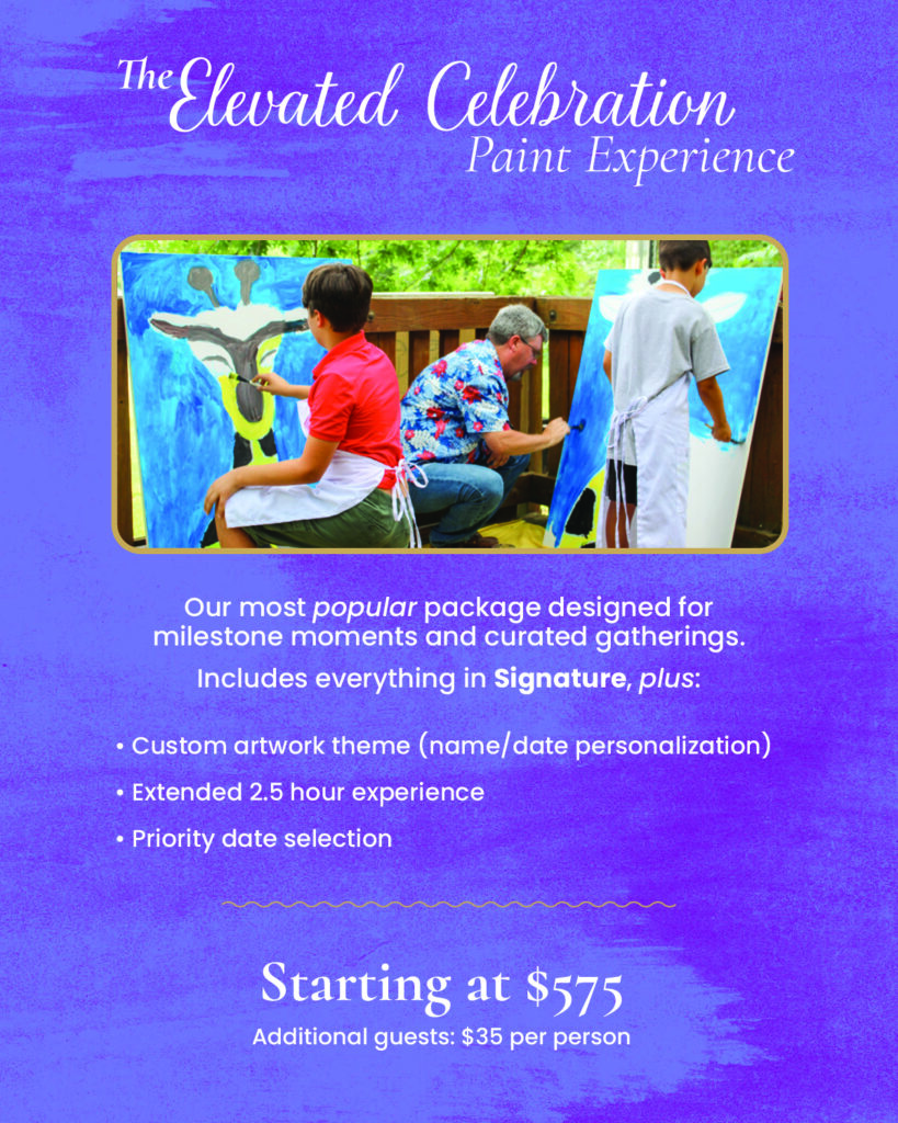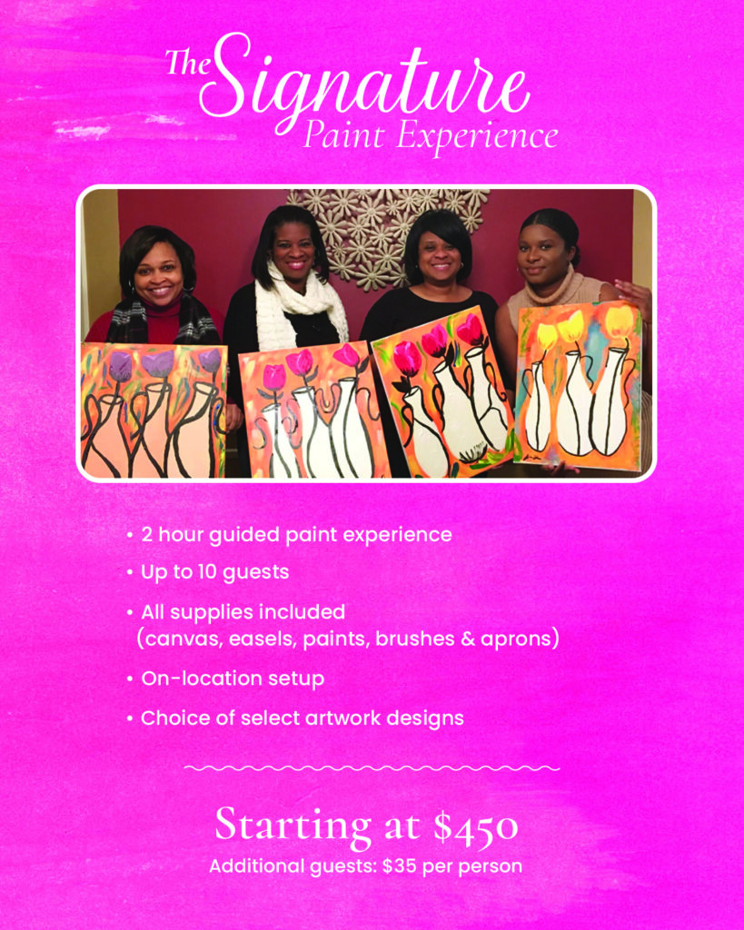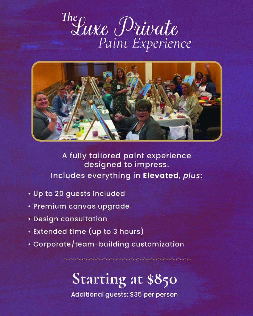 We instruct paint parties for birthday, bachelorette, girls night out, corporate team building, and similar private events.